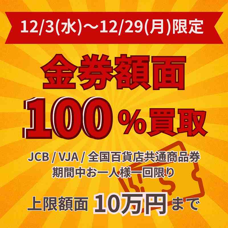 普段は満額でのお買取りが難しい金券ですが、期間中だけ“額面そのまま100%”で現金化できます✨