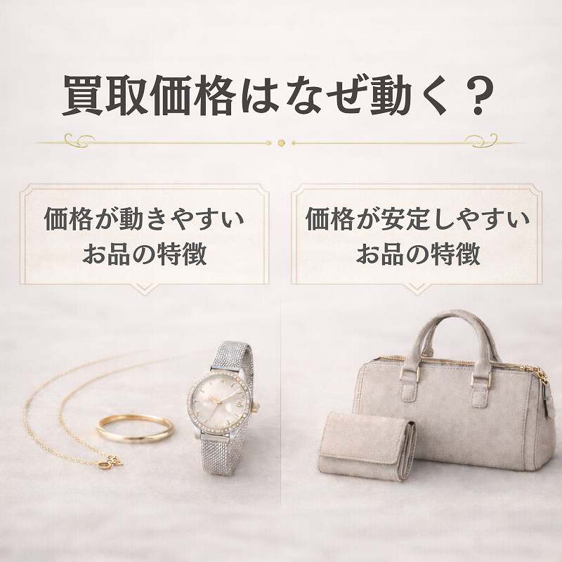 今日は、買取価格が動く理由と、タイミングで差が出やすい品・出にくい品の違いを、お話しします😊
